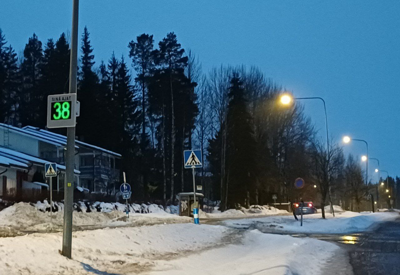 Nopeusnäyttö Naattiantien alkupäässä paljastaa nyt ohiajavien nopeudet. Toiseen suuntaan asennettuna antaisi varmasti myös mielenkiintoisia tuloksia.