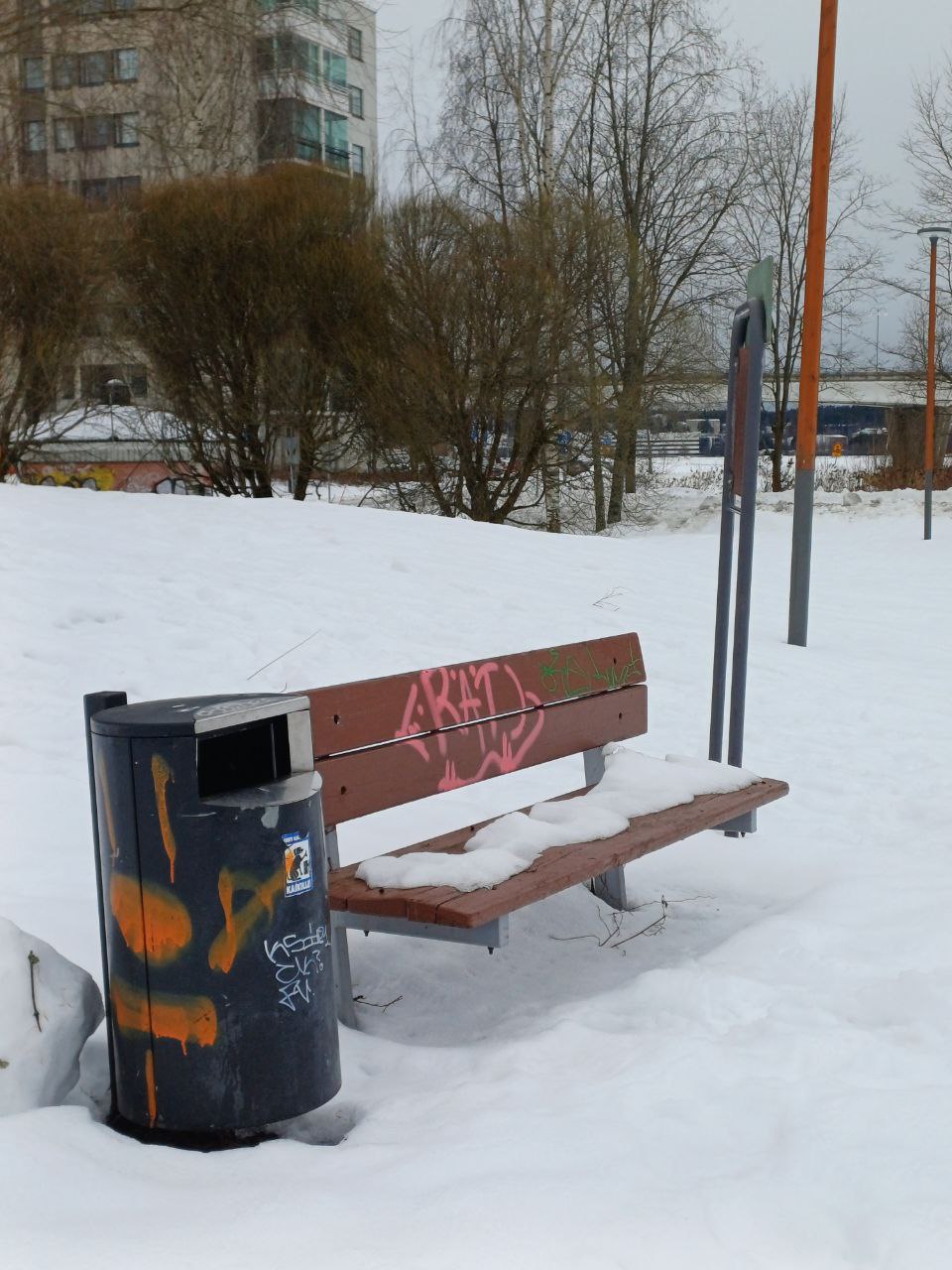 Suuruspään puistossa on kaksi roskakoria, ja näköetäisyydellä oli ainakin neljä lisää.