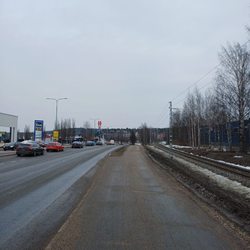 Seppäläntien reuna on varmaan kaupungin luotaantyöntävin paikka kävellä ja pyöräillä. Tässä olisi sopiva paikka lähijunaseisakkeelle!