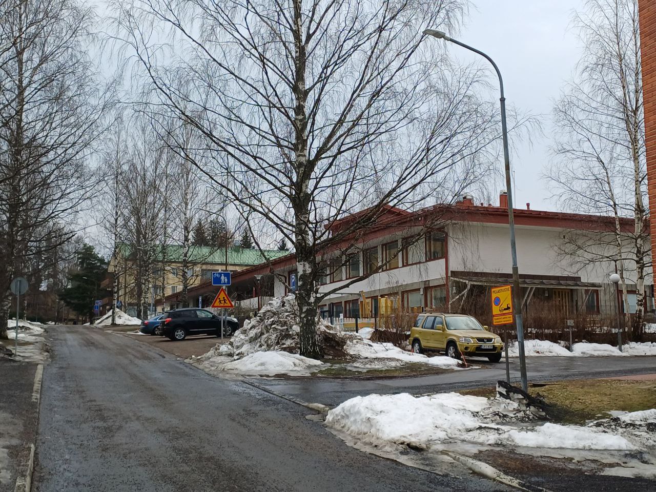 Siinä ja siinä, onko alueella niin paljoa liikennettä, ettei tässä voisi olla pyöräkatuakin, jolloin kevyen liikenteen väylän voisi jättää pelkästään jalankululle. Koulu on toki selittänyt erillisen väylän tarpeen historiallisesti.