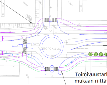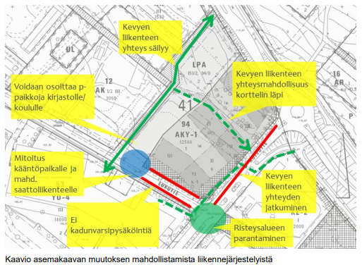 Liikennejärjestelyistä myös maininta, joka pisti minutkin katsomaan vielä tarkemmin suunnitelmaa. Viimeksi meni ohi, joten nyt tekee vähän mieli haukkua pyöräteiden mutkittelevia linjauksia, joilla on haettu autoliikenteelle mahdollisimman sujuvia kääntösäteitä. Taas nähdään, minkä liikennemuodon sujuvuus on todellisuudessa aina ensisijainen.